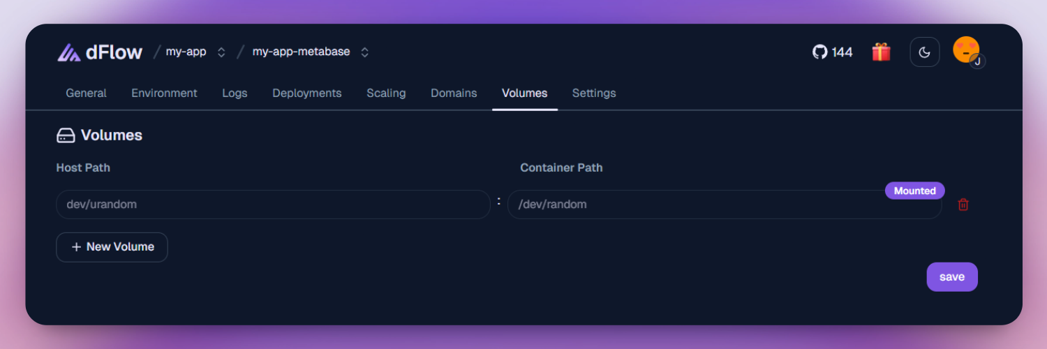Volumes in dFlow store persistent data for your services, ensuring it remains intact across restarts and deployments.