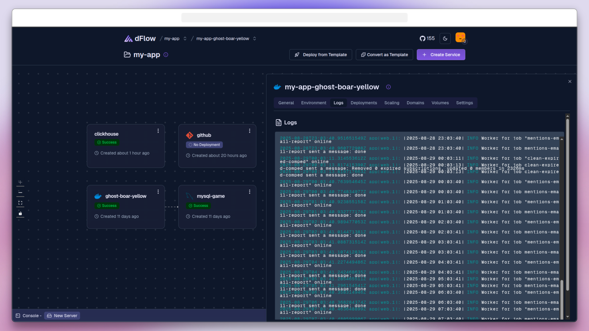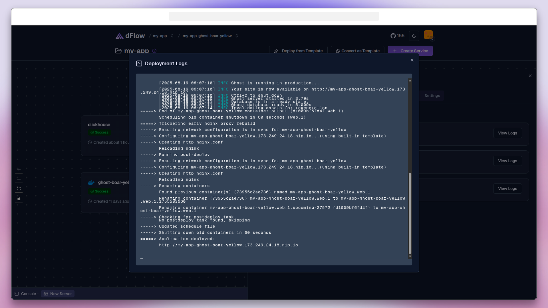 - Access: Click View Logs in the Deployments panel during or after deployment.