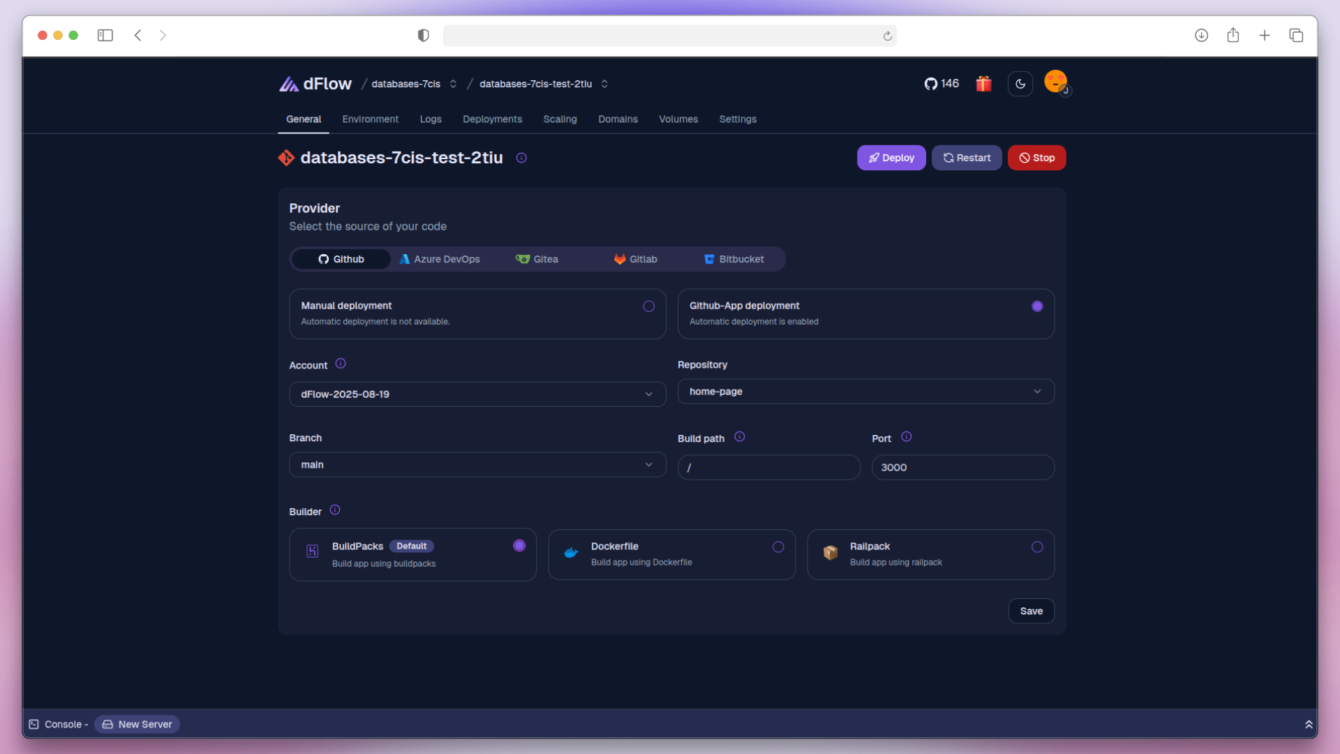 Connect your GitHub repositories with dFlow and deploy applications seamlessly.